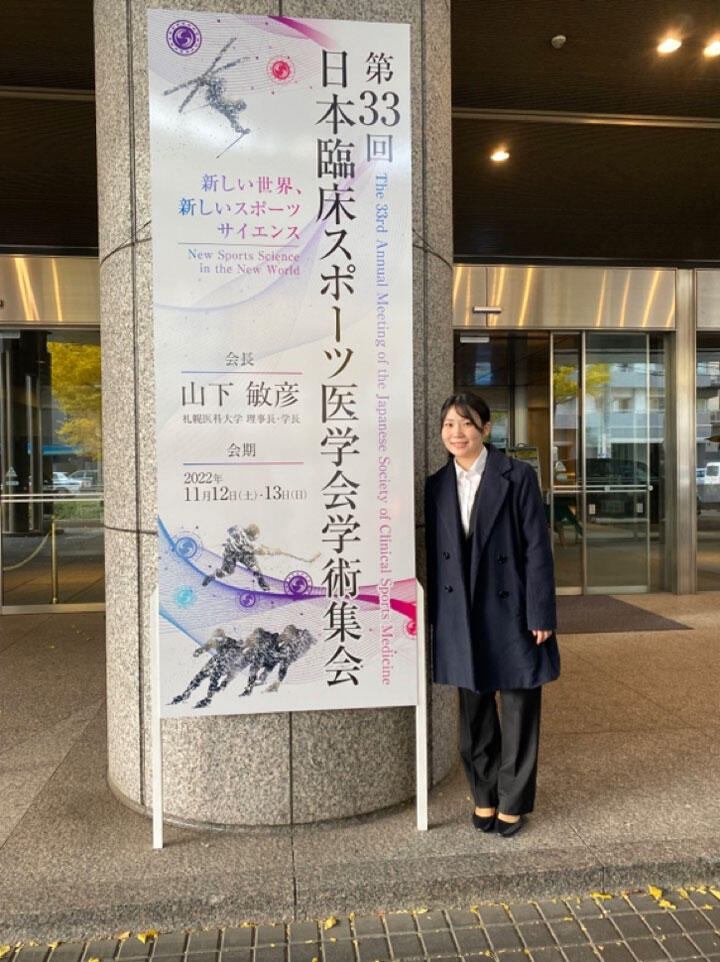 (コメント)私自身は、対面による学会参加は初めてとなり、緊張しながらもさまざまなシンポジウムや講演、演題発表を聴講し、学会の緊張感や活気を感じることができました。また、今後も学会に参加することで、最新の知見を得たり、学会を通してさまざまな先生方と交流したりし、自分自身のスキルアップに繋げたいと思います。本学会は理学療法士だけでなく、医師、アスレティックトレーナーなどスポーツに関わる職種の方々が参加していました。さまざまな視点から「スポーツ」に関わるテーマに対して議論している様子をみて、私自身も多くの人と議論できるようになりたいと、とても良い刺激をもらうことができました。今回の経験を通して、今後も多くの患者さまに還元できるように精進していきたいと思います。